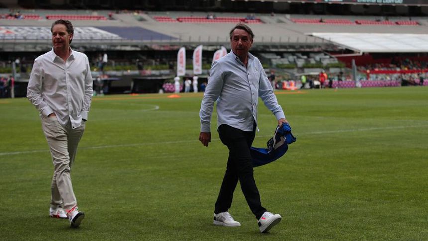 Azcárraga llegó al estadio varios minutos antes del inicio del encuentro en el que su equipo sería local administrativo, por lo que aprovechó para saludar a varios en el terreno de juego donde ya calentaba La Máquina.