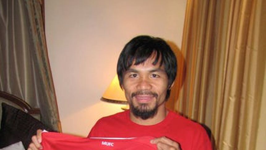 Pacquiao presume playera del Manchester autografiada