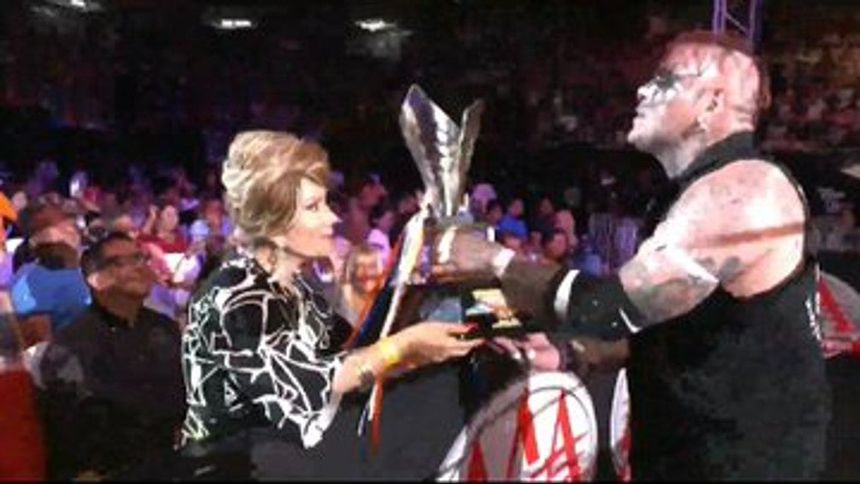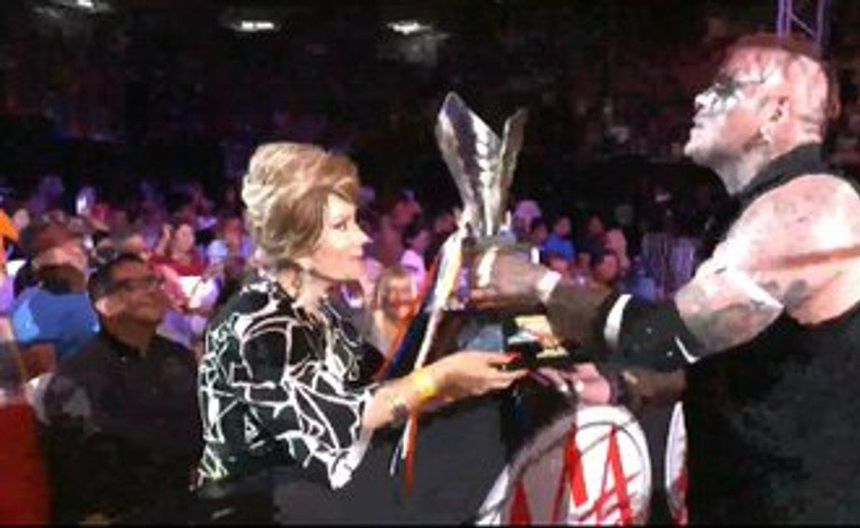 La copa la entregó la presidenta de la compañía, Marisela Peña, quien lanzó el grito de guerra del Noa Noa Style. “¡Sin Pagano, no hay fiesta!”, dijo la mandamás de AAA. Posteriormente el ganador tomó el micrófono para enviarle un mensaje al veterano de 55 años.