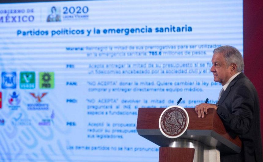 El Presidente de la República, Andrés Manuel López Obrador, reveló que hay partidos políticos que no quieren donar la mitad de su presupuesto para atender la emergencia sanitaria por coronavirus que existe en México.