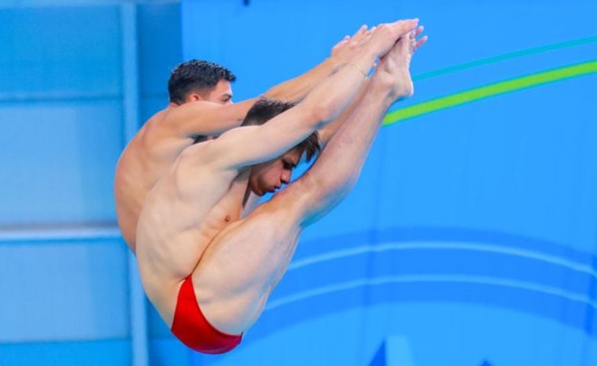 Osmar Olvera y Diego López se bañan de oro y demuestran que México es potencia en los clavados, ya que ganaron la prueba en trampolín de 3 metros y aseguraron su plaza a Juegos Olímpicos de París 2024 al finalizar con 425.46 unidades.
