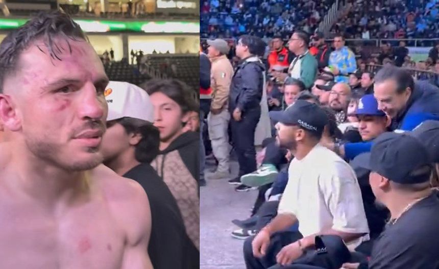 El peleador de UFC viajó a San Luis para apoyar a su primero Misael Rodríguez en su combate contra el hijo de la leyenda, pero parece que los ánimos rebasaron a ´El Pantera’ y a mitad del combate y desde su asiento de primera fila buscó encarar a Omar Chávez.