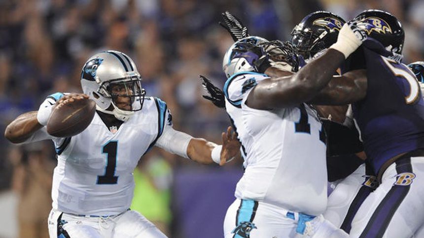 Carolina (2-1 en pretemporada) sólo tenía 67 yardas ofensivas antes del medio tiempo, sin embargo anotó 24 puntos consecutivos luego de que Baltimore (2-1) anotara en su primera posesión.