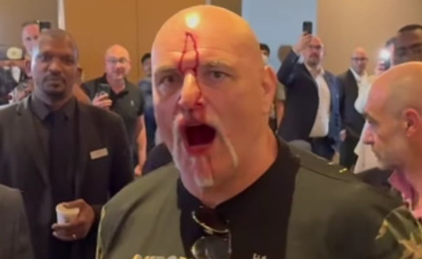 Papá de Tyson Fury da cabezazo a miembro del equipo Usyk previo a la pelea del sábado