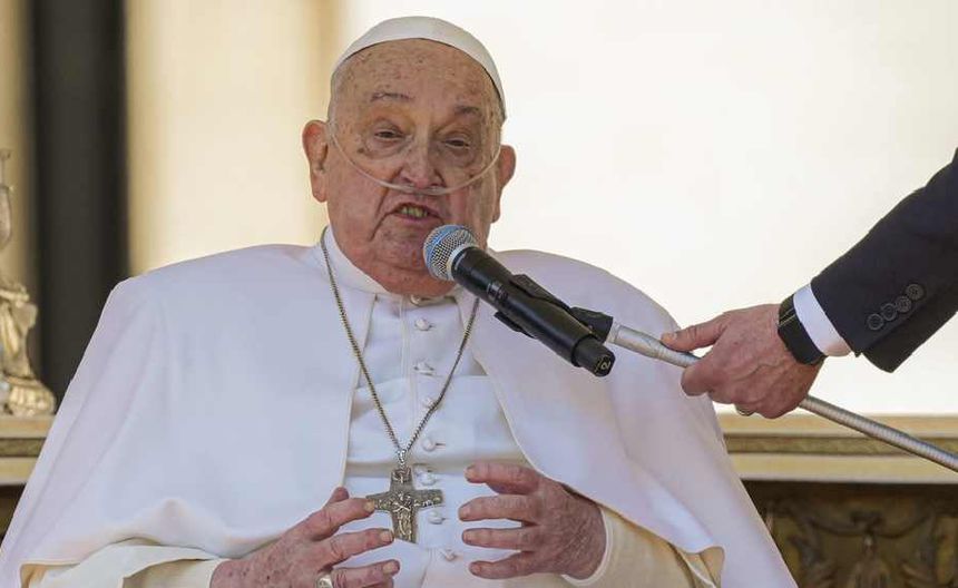 Llevaba tubos nasales para recibir oxígeno suplementario, que el Vaticano dice que se está reduciendo gradualmente. Mientras saludaba y bendecía a la multitud, sus movimientos de brazo seguían siendo limitados, lo cual su médico dijo que no estaba relacionado con su enfermedad, sino con un trauma no especificado sufrido antes de su hospitalización el 14 de febrero.
