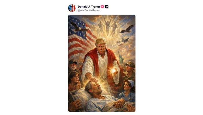 Después de ese mensaje en su red Truth Social, Trump también publicó una imagen creada con inteligencia artificial en la que se muestra como Jesús, sanando a un enfermo, mientras es observado por un grupo de estadounidenses como si fuera una deidad.