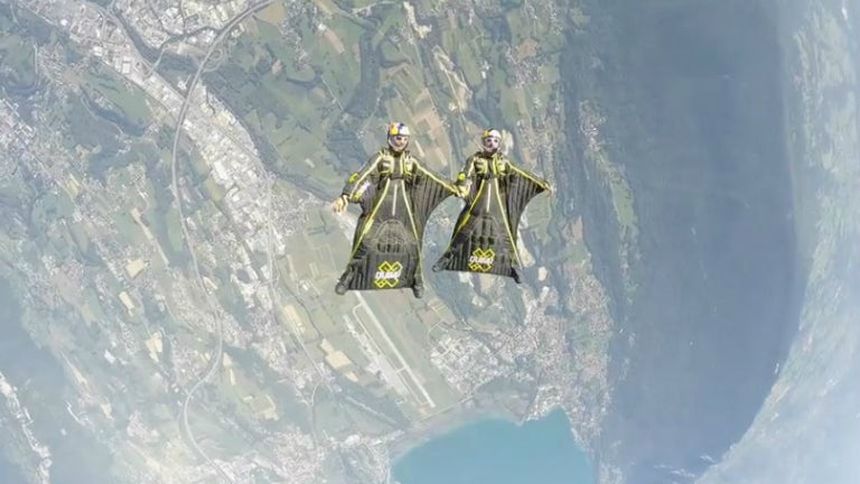 La sorprendente caída libre en la que fueron filmados mantiene una sorpresa adicional: la posibilidad de volar de espaldas, novedad atribuida a una nueva generación de los trajes utilizados por este par de pilotos, que pueden decidir entre mirar al cielo o a la tierra con sólo un par de maniobras.