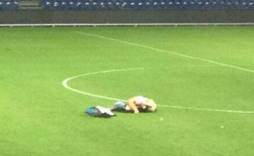 Brondby y Randers de Dinamarca habían empatado sin goles. No había ido mucha gente al estadio y era la oportunidad para que una pareja de jóvenes puedan cumplir su fantasía sexual: tener relaciones en medio de una cancha de futbol.