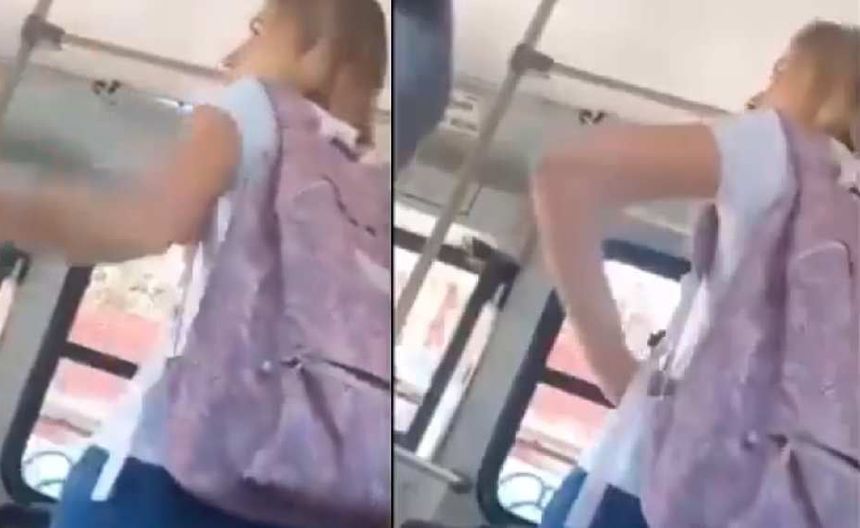 En el video se ve a una mujer rubia con una mochila cargando y de origen español, por su tono de voz, la cual está alegando con el chófer del microbús porque aparentemente le faltan dos pesos de su pasaje y el operador se niega a avanzar hasta que le pague.