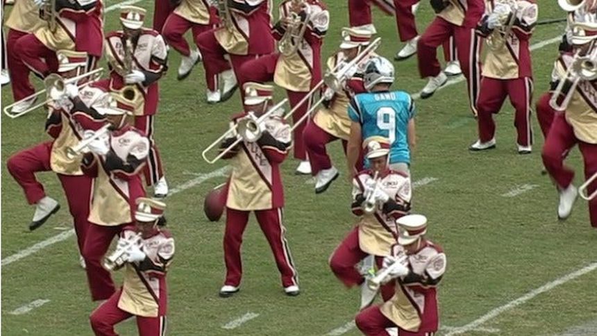 Para Graham Gano, pateador de las Panteras de Carolina, lo más importante es el calentamiento, por lo que no le importó que la banda de 'Bethune-Cookman' estuviera en el campo.