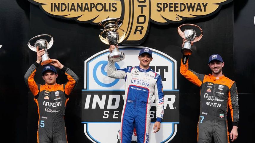 Alexander Rossi, ganador de las 2016 Millas de Indianápolis 500, terminó tercero. El ganador de la pole Christian Lundgaard terminó cuarto para Rahal Letterman Lanigan Racing, su segundo final consecutivo entre los cinco primeros en el circuito de 14 curvas y 2.439 millas de Indy.