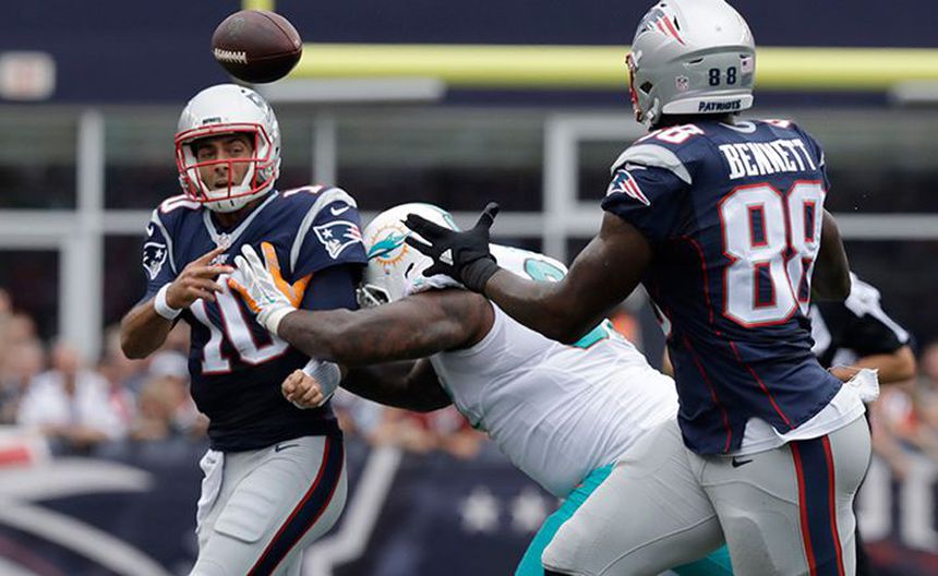 Patriotas de Nueva Inglaterra se impuso 31-24 a Delfines de Miami con su tercer quarterback, luego de que Jimmy Garoppolo sufriera una lesión en el segundo cuarto.