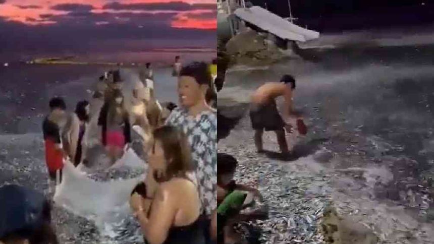 Durante las primeras horas de hoy 8 de enero, en redes sociales se hizo viral un video grabado en una playa de la localidad de Sarangani, en Filipinas, en donde se observa a una enorme cantidad de peces tener un comportamiento extraño, pues contrario a lo que haría cualquier animal marino, estos se acercan a la orilla del mar y varios de ellos lograron salir hasta la arena.