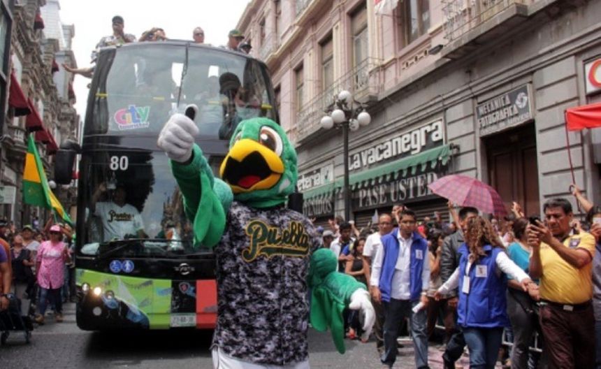 Pericos de Puebla desfilan por el Zócalo tras haber conseguido el campeonato en LMB