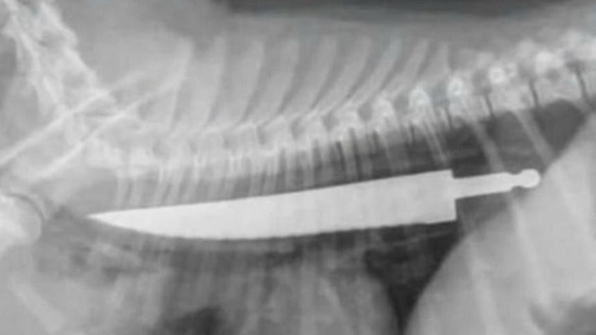 La médico veterinario Jody Braddock aseguró que nunca había visto algo igual, esto después de extraerle el cuchillo con sumo cuidado para no cortar por dentro al perro de raza Bull-terrier.
