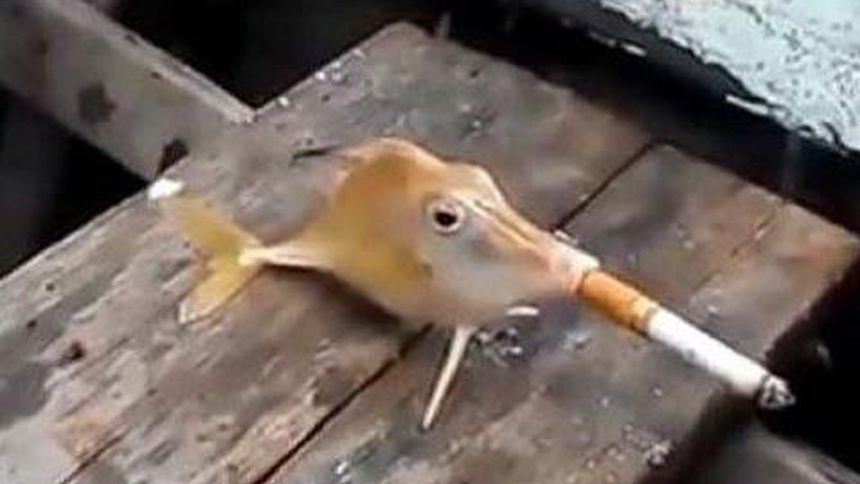 Pescadores ponen a 'fumar' a un pez