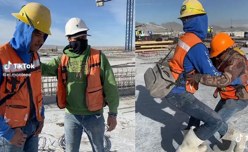 En las imágenes, se puede apreciar cómo dos de los albañiles salen al frente mientras un tercer obrero se une a ellos y comienzan a bailar al ritmo pegajoso de la canción. Los pasos prohibidos se hacen presentes en una divertida y espontánea muestra de alegría y diversión.