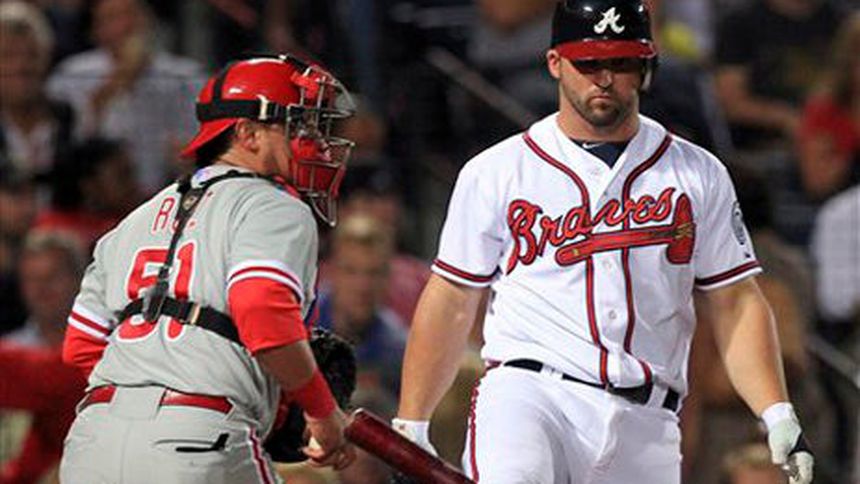 Derek Lowe tuvo otra salida para el olvido, al permitir cinco carreras en cuatro entradas completas, y los Filis dejaron a los Bravos sumidos en la incertidumbre de cara al último día de la temporada regular.