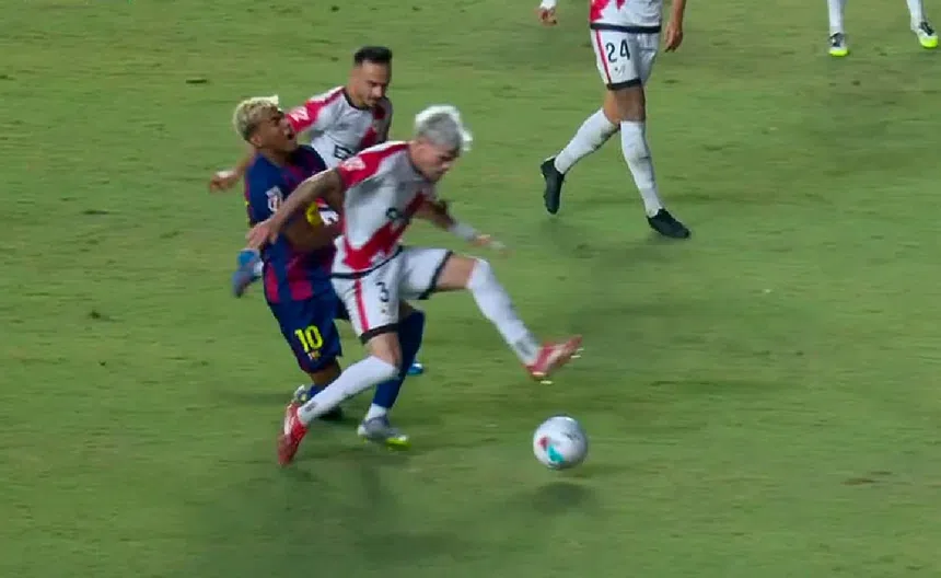¡Polémico juego con VAR inservible! Árbitro marca penal sobre Lamine Yamal en Vallecas