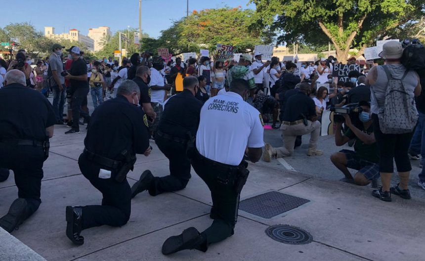Policías de Miami se arrodillaron junto a manifestantes en oración por George Floyd