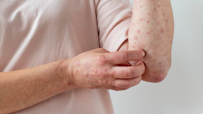 “La infección tiene un periodo de incubación de 10 a 14 días y empieza con un cuadro clínico inespecífico: fiebre alta, tos, goteo nasal, ardor y enrojecimiento en los ojos, así como dolor de cabeza, que puede mantenerse por dos días; luego aparece una erupción cutánea en todo el cuerpo”, precisó.