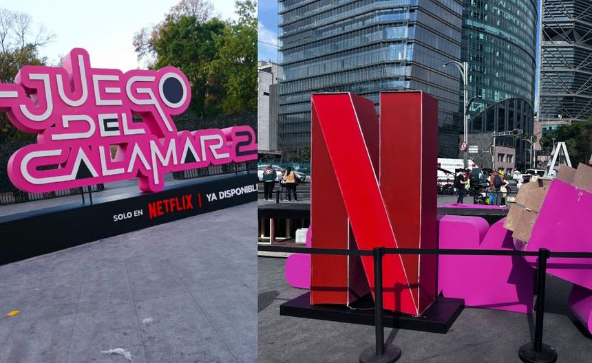 Netflix también colocó en el lugar instalaciones publicitarias con el logo de la plataforma de streaming, el nombre de la serie, y un puesto metálico con personajes disfrazados como los soldados de El Juego del Calamar.