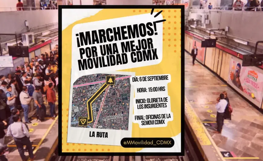 La marcha, que tenía como objetivo exigir mejoras en el servicio del Metro y visibilizar los “diez puntos de crisis” que afectan la movilidad cotidiana de millones de capitalinos, estaba programada para salir a las 15:00 horas de la Glorieta de los Insurgentes, con destino a las oficinas de la Secretaría de Movilidad en la colonia Roma Norte.
