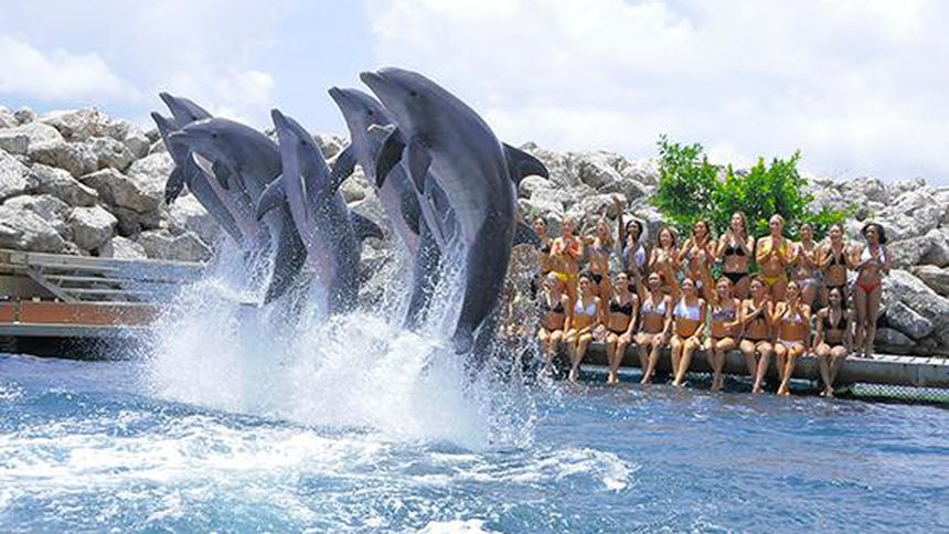 Porristas de Pieles Rojas conviven con delfines