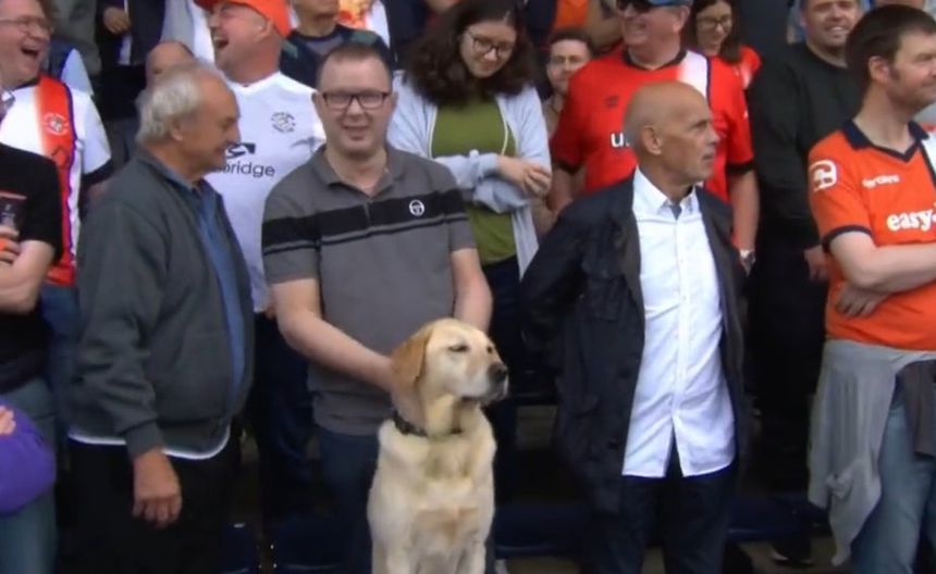 En el video se observa que el canino se encontraba ubicado en una de las gradas del inmueble, rodeado por aficionados quienes le mostraban su cariño y trataban de saludar al aficionado cuatro patas del Luton Town.