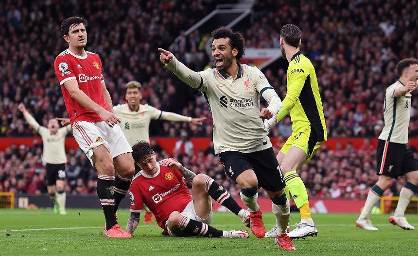 Mohamed Salah festejando gol con el Liverpool ante el Manchester United | TWITTER | @PREMIERLEAGUE