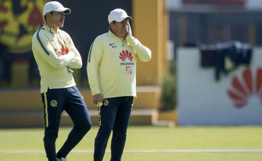 Giber Becerra y Miguel Herrera observando el entrenamiento azulcrema | MEXSPORT