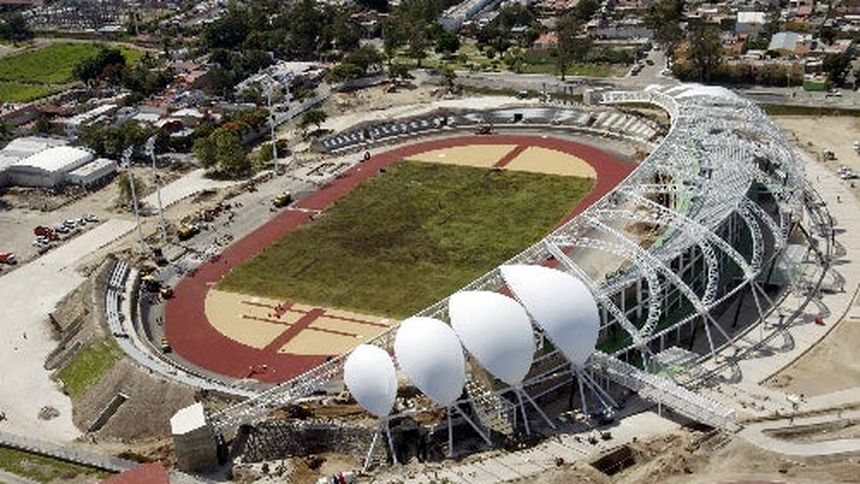 El estadio debió ser entregado en junio pasado y su atraso es consecuencia de tres cambios de sede por asuntos ambientales y políticos desde 2008 hasta agosto de 2010, cuando inició su construcción en una antigua unidad deportiva de 7,5 hectáreas de extensión.