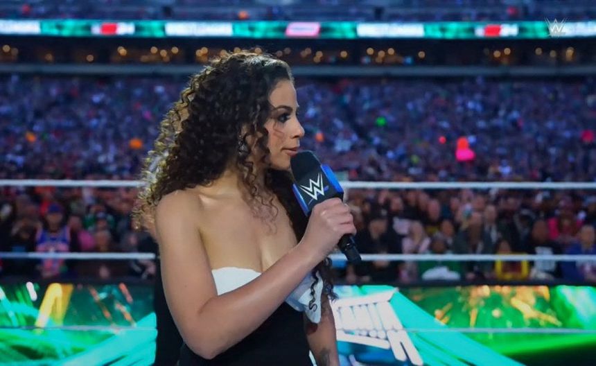 En el video que se ha vuelto viral a través de la red social X, se puede ver como Samantha rompe en llanto en cuanto se escucha la campana que da como ganador a Cody Rhodes y al momento en el que intenta hablar por el micrófono para anunciarlo como el nuevo Campeón Indiscutido de la WWE la voz se le corta debido a que rompió en llanto unos segundos antes.