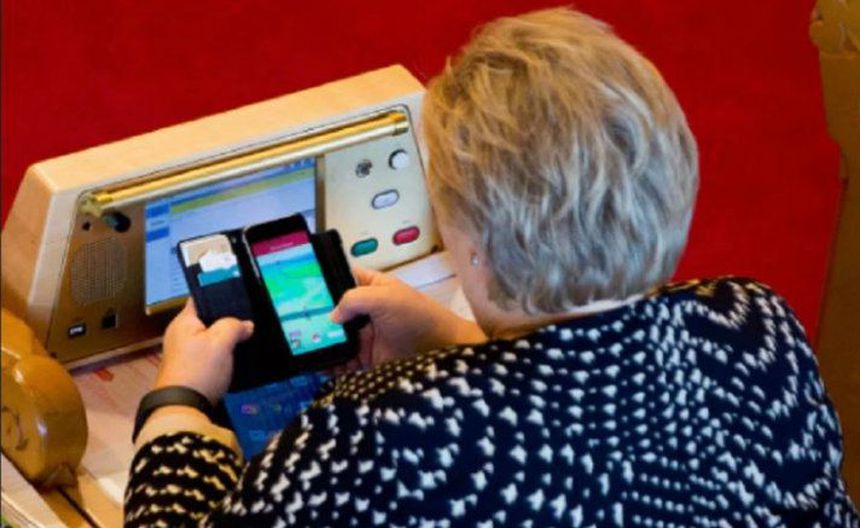 La primera ministra de Noruega, Erna Solberg, fue captada jugando Pokémon Go dentro del Parlamento, mientras se llevaba a cabo un debate.