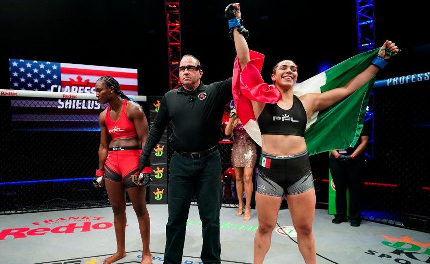 Con una victoria sobre la legendaria boxeadora Claressa Shields, la peleadora mexicana Abigail Montes hizo su presentación en las “grandes ligas” de las Artes Marciales Mixtas (MMA) en la última cartelera de la temporada 2021 de Professional Fighters League (PFL).