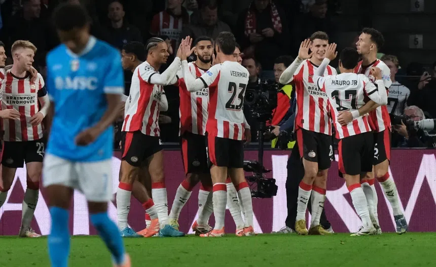 PSV da la sorpresa de la jornada y golea al Napoli en Champions League