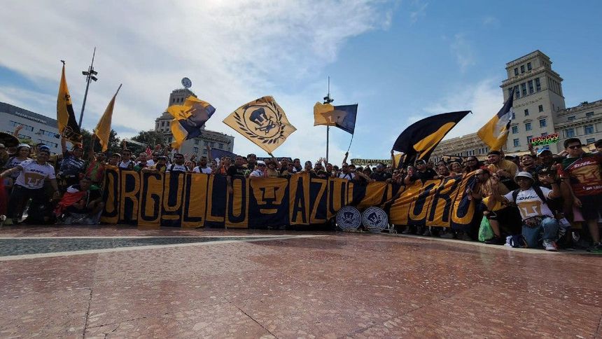 La afición de Pumas hizo la fiesta en el metro de la ciudad de Barcelona rumbo al Spotify Camp Nou, sede que albergará el juego entre los universitarios y el Barcelona.