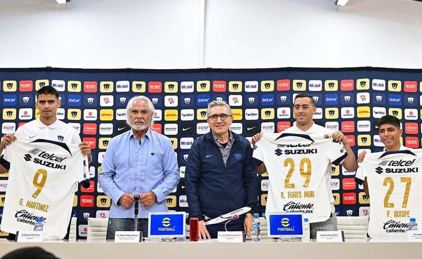 Pumas presentó de manera oficial a Rogelio Funes Mori, Guillermo Martínez y Piero Quispe, como refuerzos del conjunto Auriazul para el Clausura 2024. Por su parte Miguel Mejía Barón, vicepresidente del equipo, declaró que el club universitario deberá siempre estar compitiendo en la parte más alta del torneo.