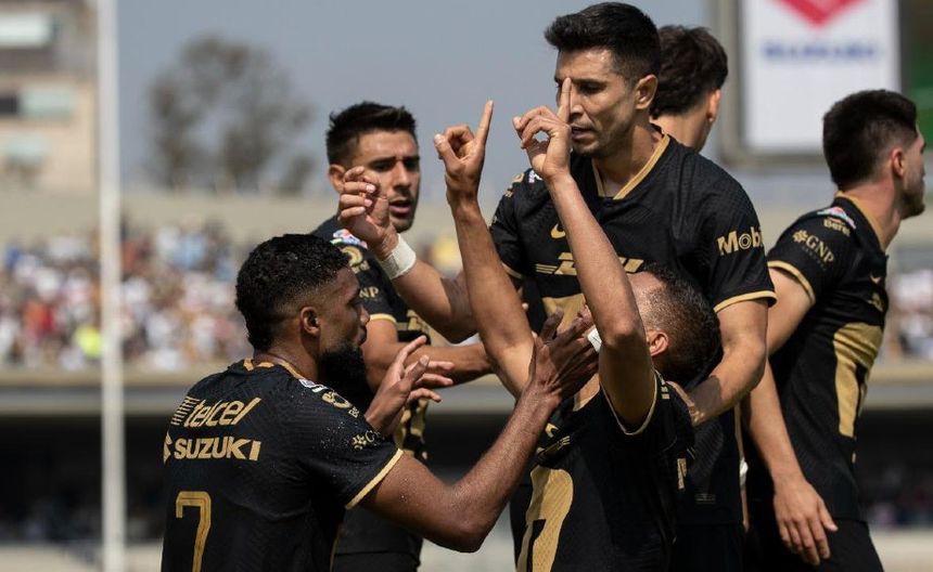 Jugadores de Pumas festejando goleada | MIGUEL PONTÓN
