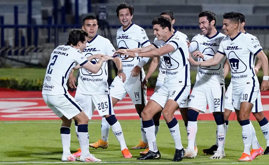 Jugadores de Pumas festejan una anotación | IMAGO7