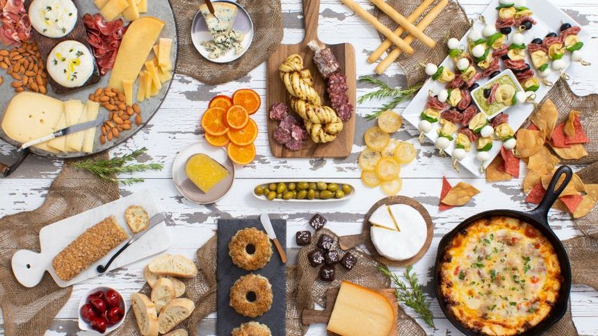 Una tabla de quesos, un plato o un plato es una adición deliciosa y satisfactoria para cualquier comida o celebración. Un plato típico de queso contiene solo unas pocas onzas de queso por persona, acompañado por otro alimento, a menudo fruta fresca de temporada, frutas secas y nueces o incluso chocolate, junto con rebanadas finas de pan hecho a mano o galletas artesanales, carnes curadas, aceitunas y más.