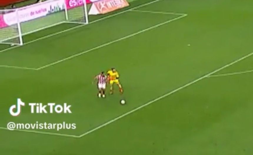Poussin, mientras se preparaba para un saque largo, soltó el balón en el césped sin percatarse de la presencia de Pablo Insua, defensa del Sporting, quien rápidamente aprovechó la situación para marcar el empate en los momentos finales del partido.