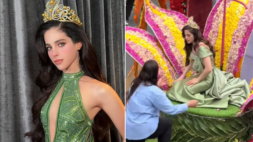 El momento ocurrió cuando la reina universal recorría las calles de la ciudad sobre un carro alegórico, saludando a miles de asistentes desde una estructura elevada. Testigos captaron cómo, de forma súbita, Bosch perdió el equilibrio y cayó, lo que provocó preocupación entre los presentes y se viralizó rápidamente en redes sociales.