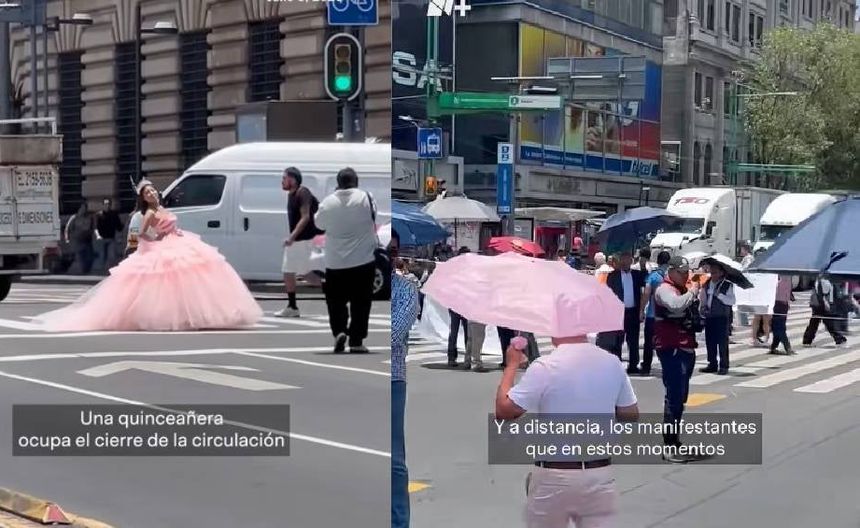 Una situación prácticamente idéntica ocurrió en noviembre de 2022, cuando otra quinceañera también aprovechó una manifestación en el Eje Central para posar con su vestido y obtener fotografías únicas, con la avenida vacía y el Centro Histórico como fondo.