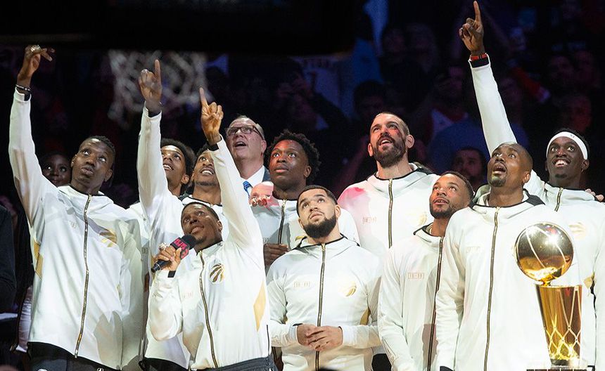 Los Toronto Raptors recibieron sus anillos de campeones de la NBA y desplegaron el banderín conmemorativo de su triunfo en la Final de la campaña anterior, justo antes de inaugurar la nueva temporada, enfrentando a los Pelicans.