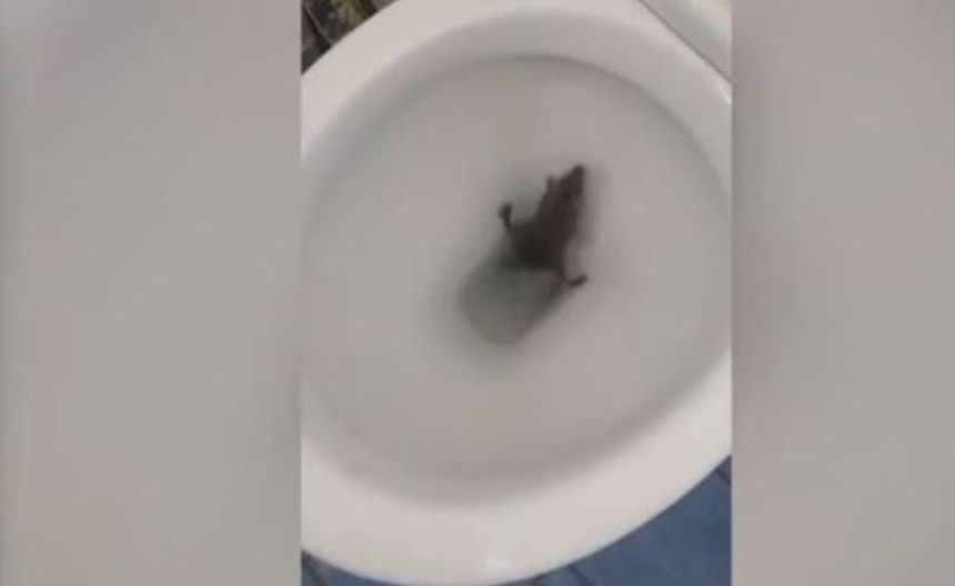 Rata hace realidad el miedo de muchos... ¡sale del escusado!