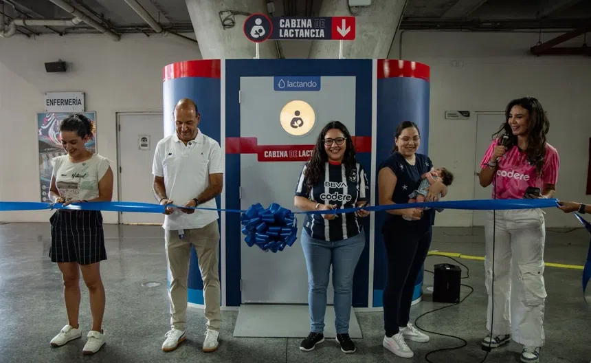 Con el compromiso de mejorar la experiencia de su afición, Rayadas de Monterrey inauguró este domingo su cabina de lactancia ubicada en el Estadio BBVA. Es la primera de cuatro espacios que se destinarán para este fin al interior del Gigante de Acero.