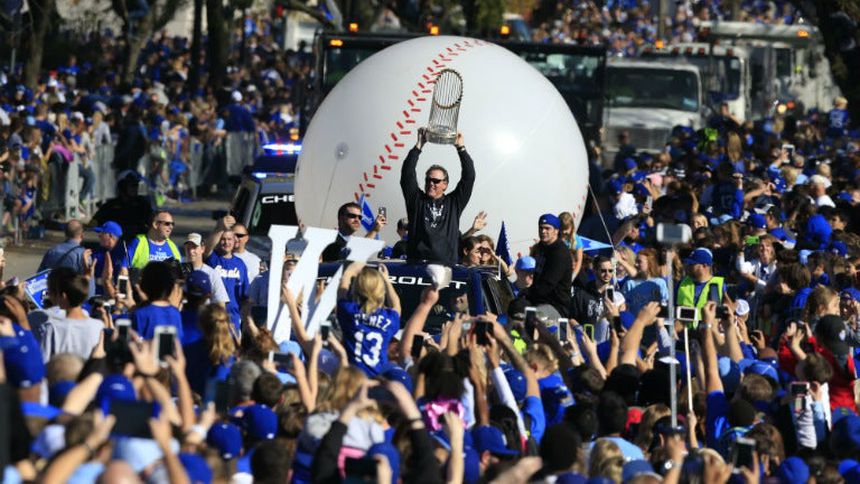 Tras un recorrido triunfal de más de 3,5 kilómetros en los compartimientos de carga de distintas camionetas, el dueño del equipo David Glass, el entrenador Ned Yost y varios integrantes de los Reales, subieron a un estrado, desde donde agradecieron el aprecio de los seguidores.