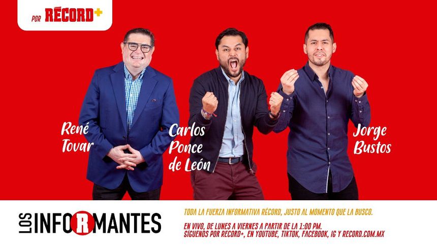 Así que no te pierdas una nueva edición de Los Informantes a través de Récord + con Carlos Ponce, Jorge Bustos y René Tovar en punto de la 1 de la tarde a través de todas nuestras redes sociales.