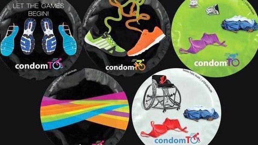 La serie de condones CondomTO' están siendo repartidos de forma gratuita en distintos puntos de la ciudad, y está compuesta de seis diferentes envoltorios, todos con referencias deportivas, diseñados por otros tantos artistas de la ciudad.
